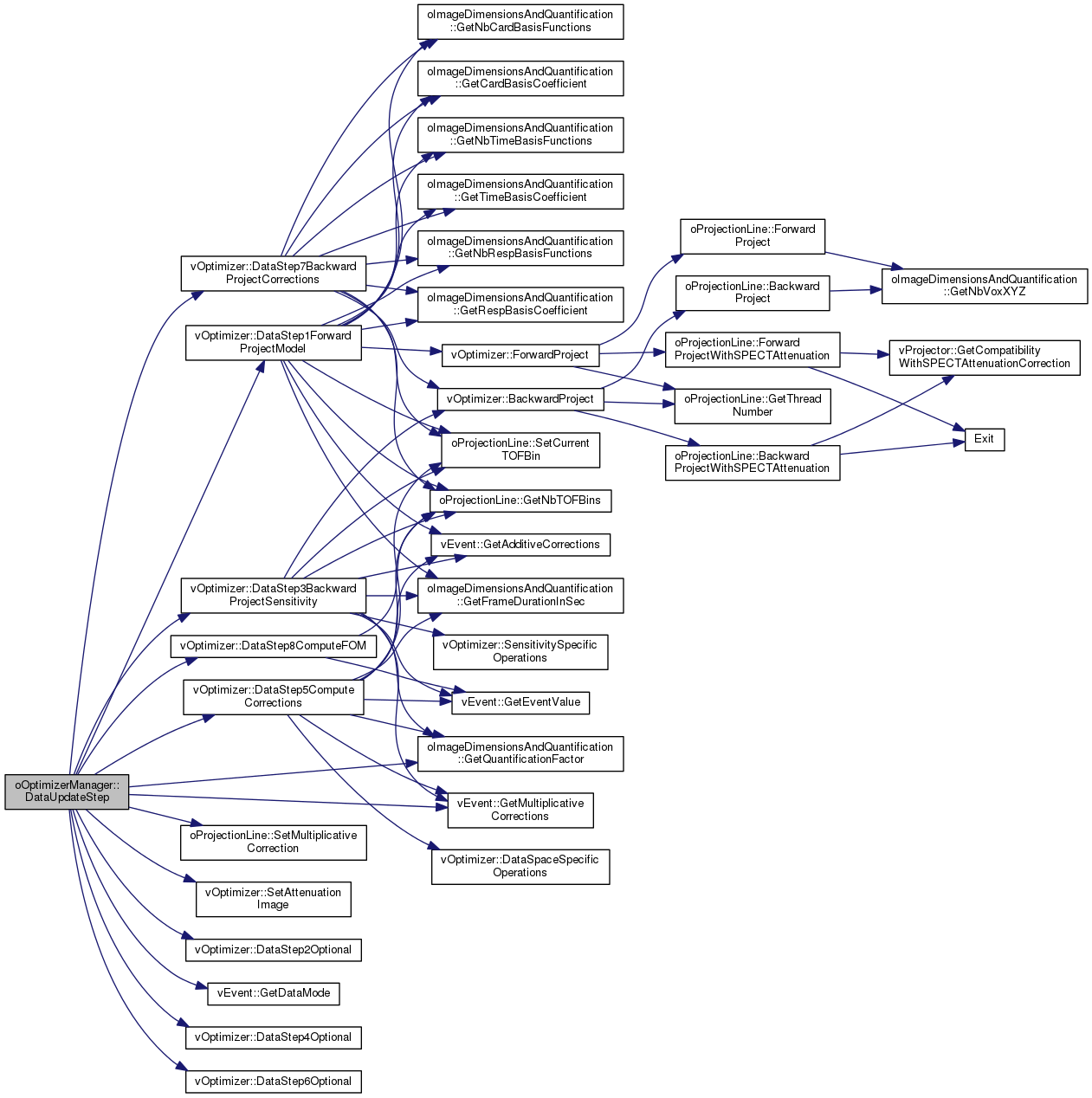 This function will call many functions of the vOptimizer that split up the update step in the data space in smaller steps: 1. forward projection, 2. optional step, 3. backproj sensitivity for histogram mode,